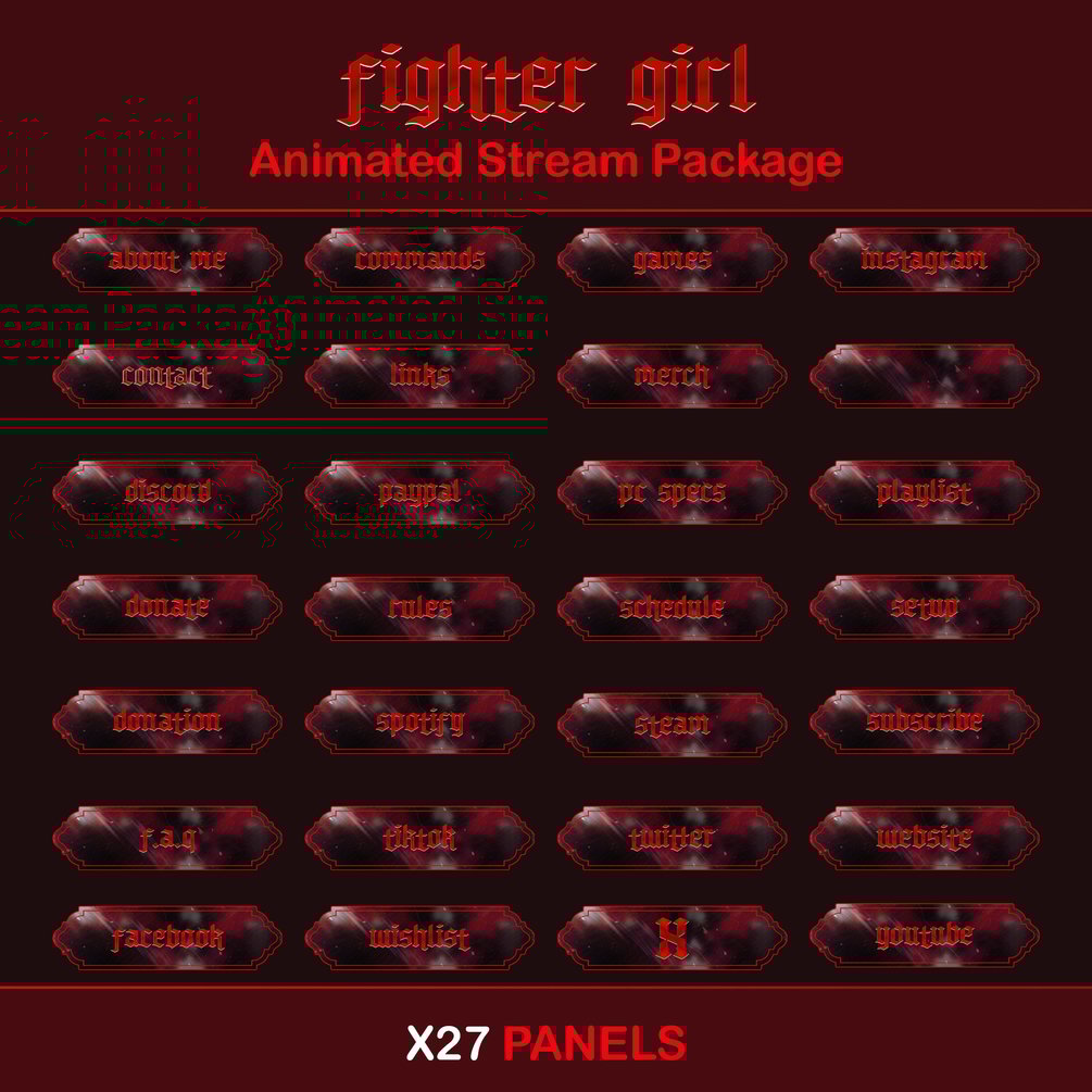 Hi, here is "Fighter Girl " Animated Stream Overlay Pack, I hope you guys like it. Thank You! ________________________________________________________________________