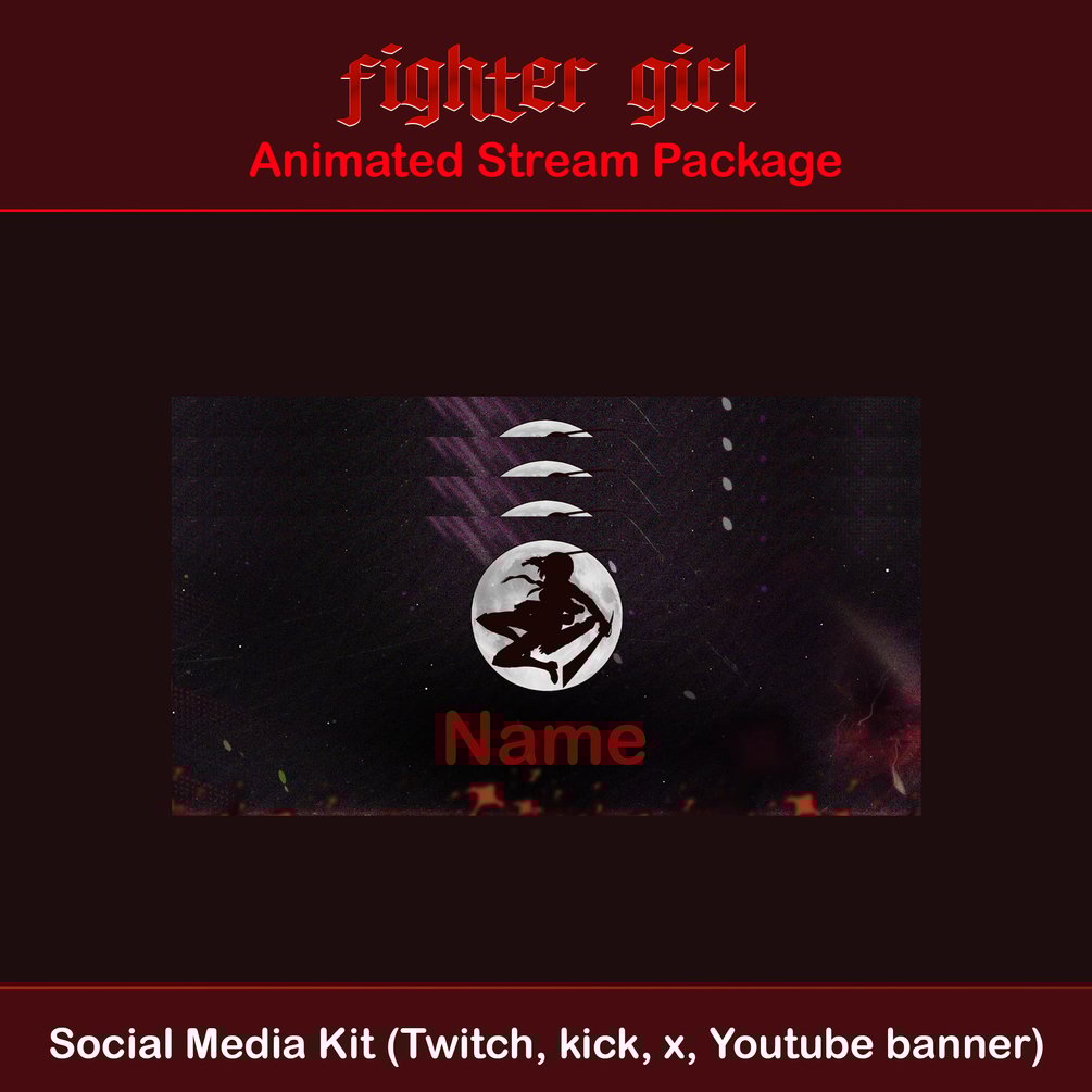 Fighter Girl Animated Full Stream Package: For Twitch Overlay, YouTube, Kick, Facecam, Alerts, Anime Overlay