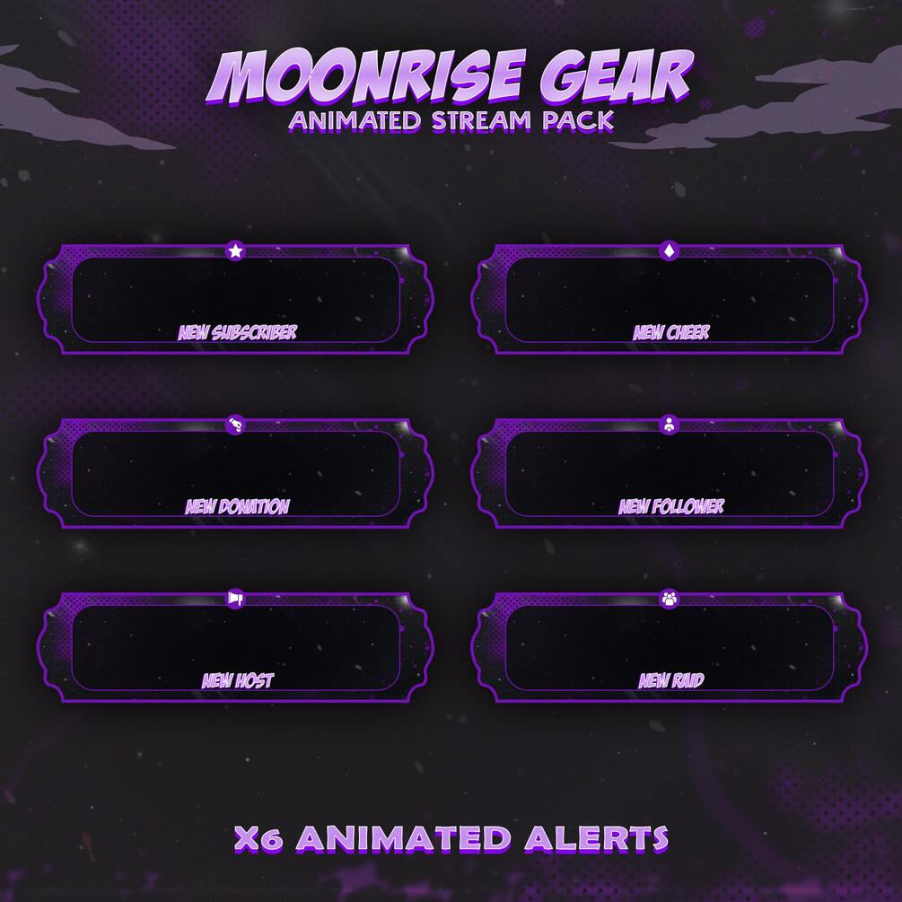 Moonrise Gear Animated Stream Package: For Twitch Overlay, YouTube, Kick, Facecam, Alerts, Stream Overlays