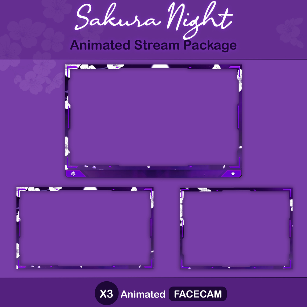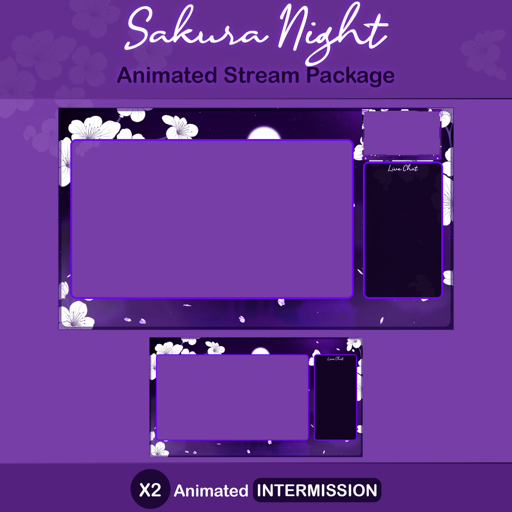 Hi, here is "Sakura Night " Animated Stream Overlay Pack, I hope you guys like it. Thank You! ________________________________________________________________________