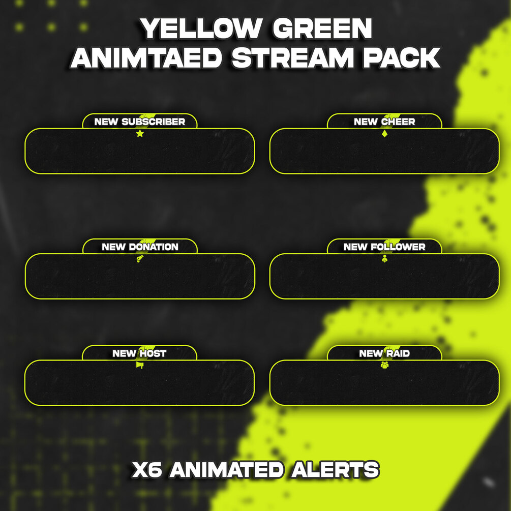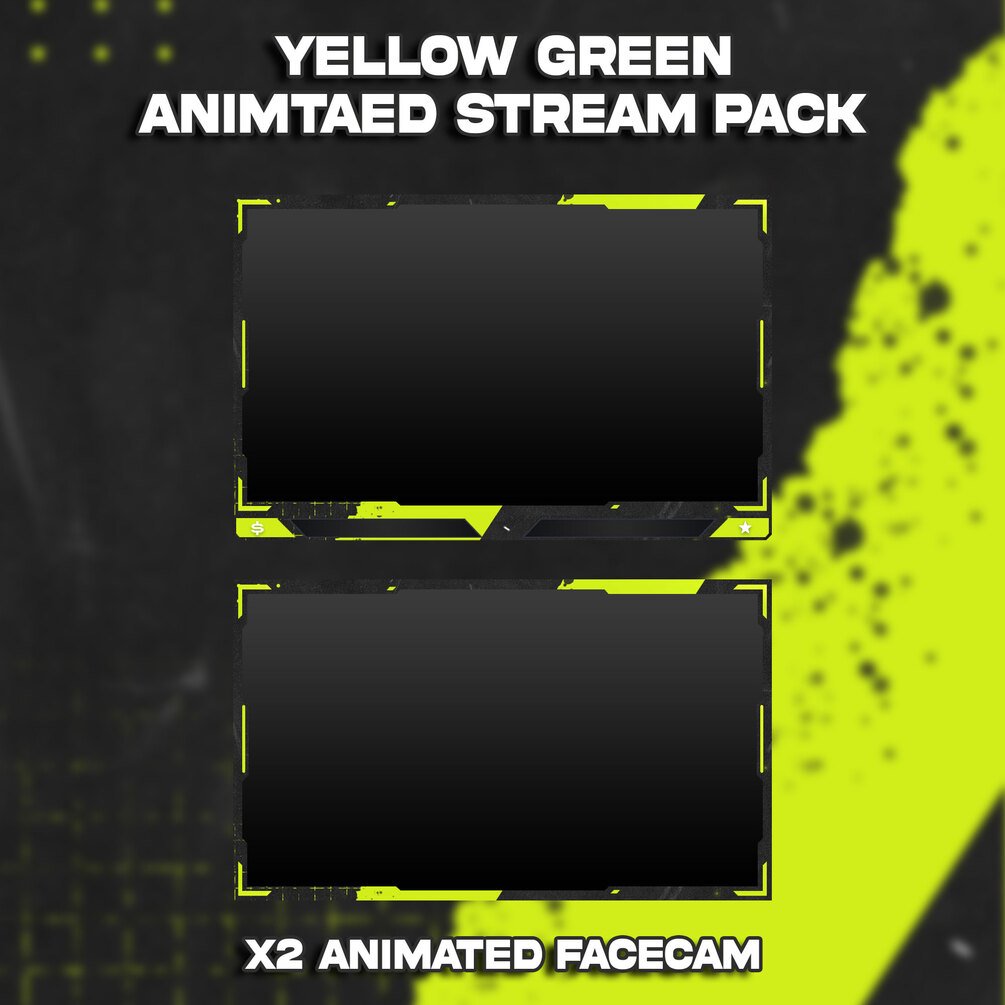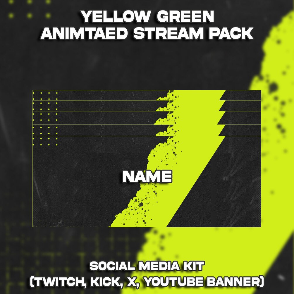 Yellow Green Animated Stream Package : For Twitch Overlay, YouTube, Kick, Facecam, Panels, Alerts, Stream Overlays