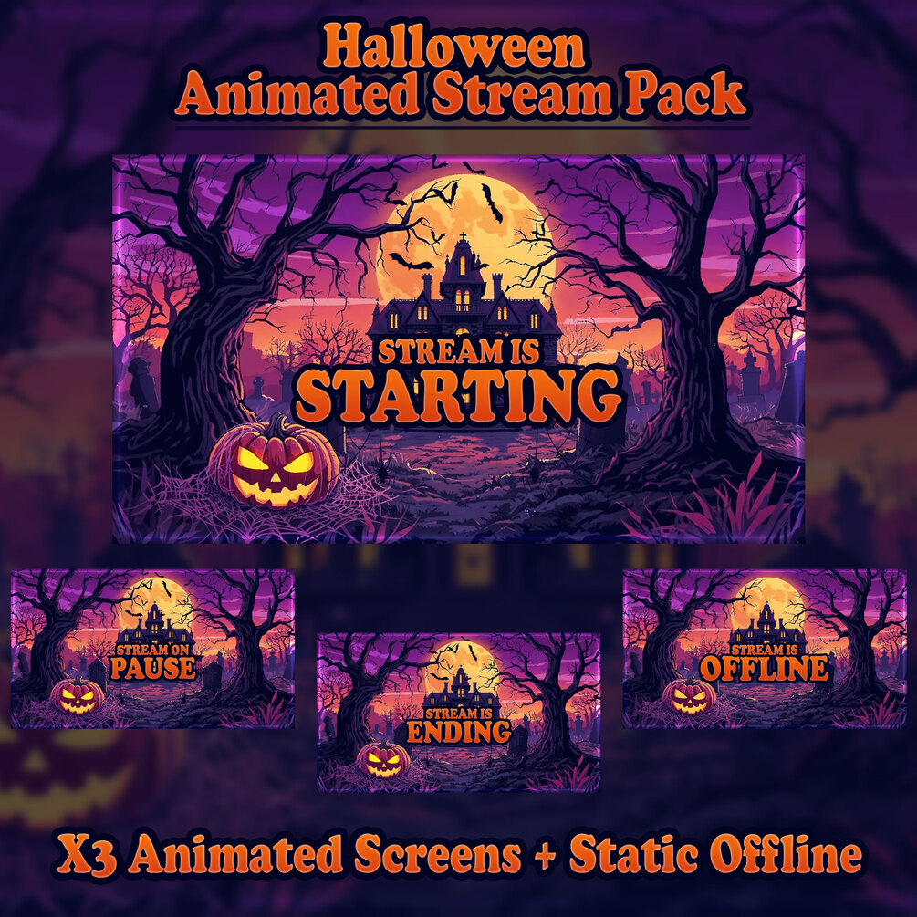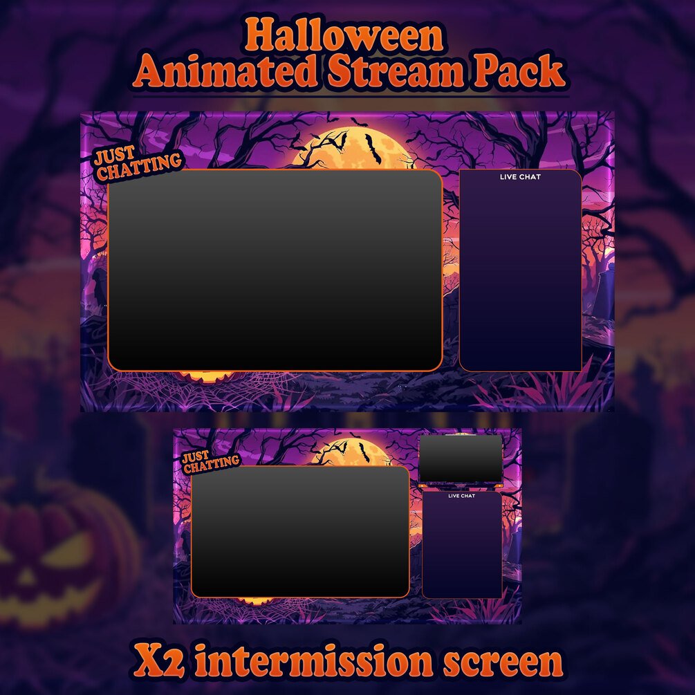 Halloween Animated Stream Package : For Twitch Overlay, YouTube, Kick, Facecam, Panels, Alerts, Stream Overlays