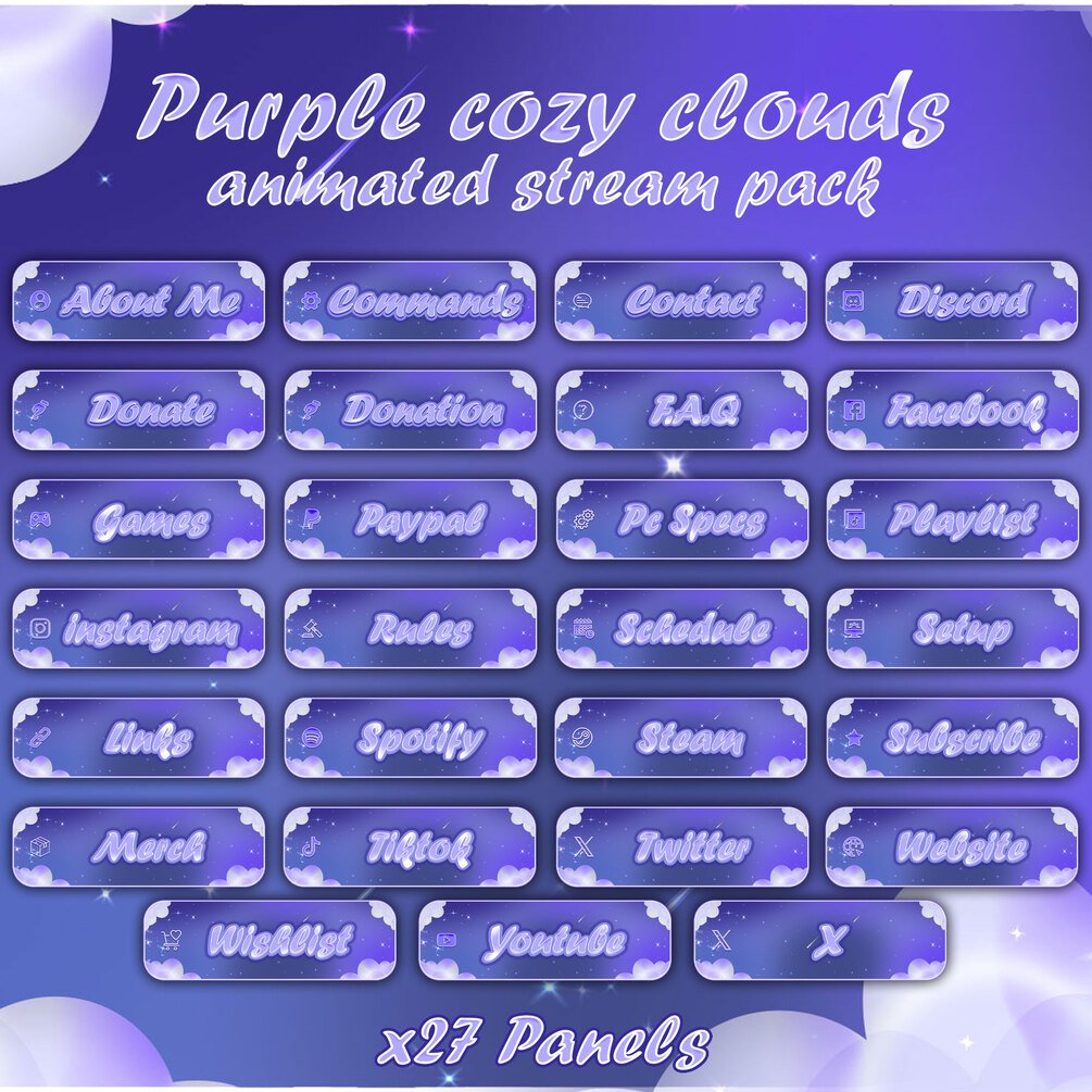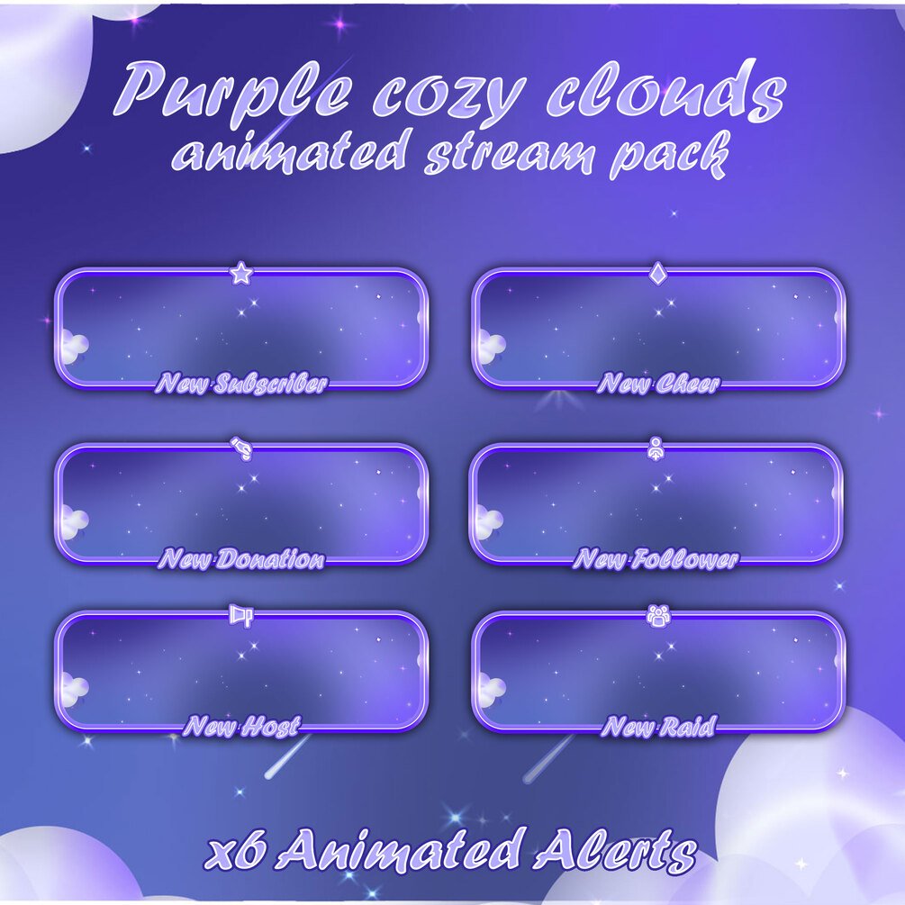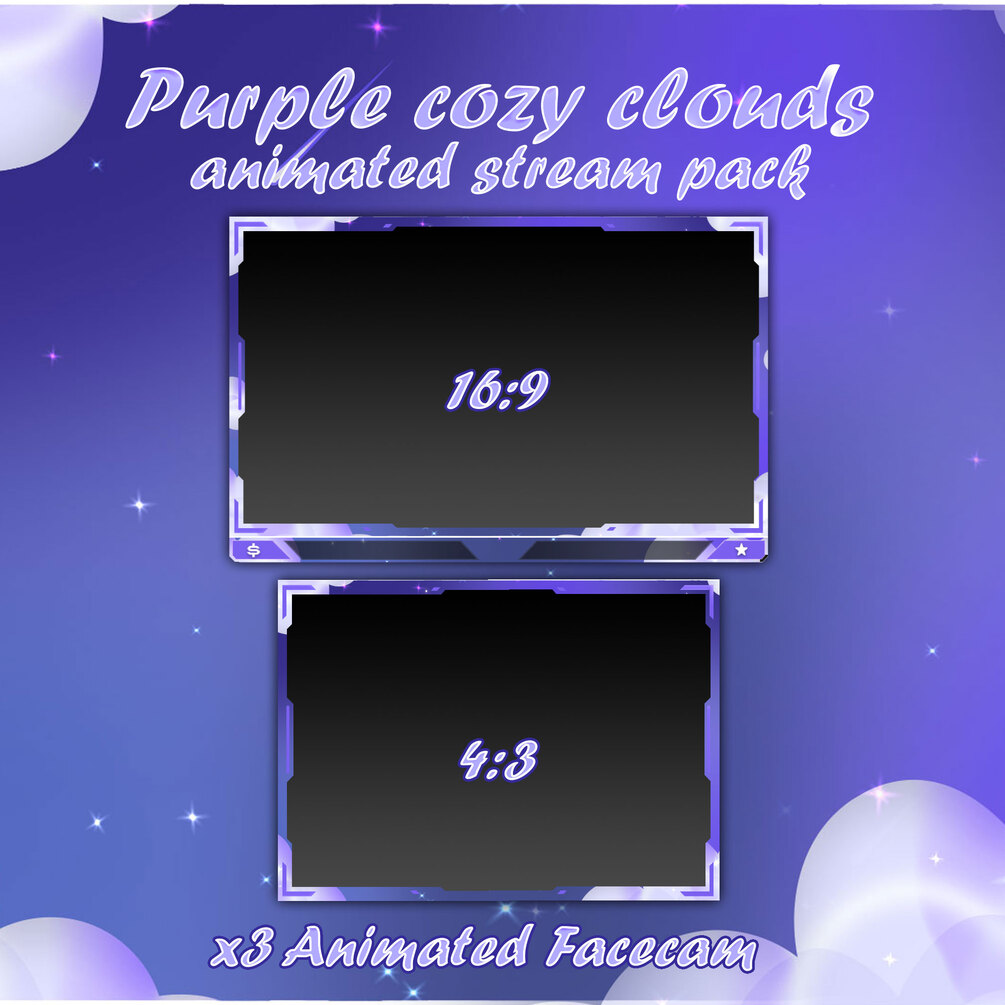 Hi, here is "Purple Cozy Clouds" Animated Stream Overlay Pack, I hope you guys like it.